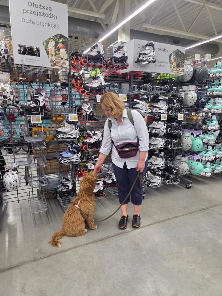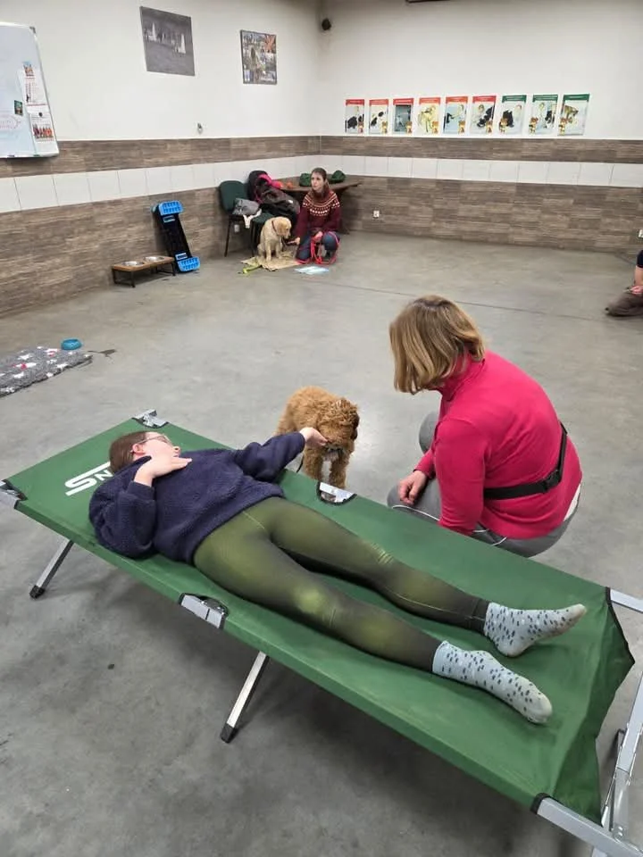 Agnieszka Pache -Waś z Ośrodka Szkolenia Psów Everest Szczyt Porozumienia test predyspozycji który jest niejako sprawdzianem dla przeprowadzonej dotychczas socjalizacji. Dziękujemy za profesjonalnie przeprowadzone testy oraz niesamowite podejście do psiaków, które były bardzo zaangażowane i swobodnie bez strachu ćwiczyły bawiąc się przy tym doskonale. Jesteśmy z nich bardzo dumni, poradziły sobie naprawdę dobrze.